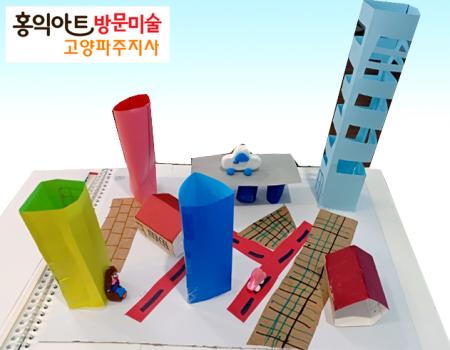 색지를 접어 자르고 풀로 붙이면 멋드러진 건물이 완성되지요 상자를 이용해도 좋지만 여러 색깔의 색지, 색종이를 이용하여 창문을 재미나게 뚫어보는 것도 좋답...