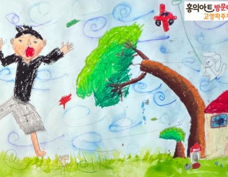 오늘은 날씨를 주제로 발상을 해보았어요 여러 날씨에 대해 이야기 나눈 후 어떤 상황을 그릴 것인지 생각해보았지요~ 홍익이는 바람이 많이 부는 날을 표현하고 ...