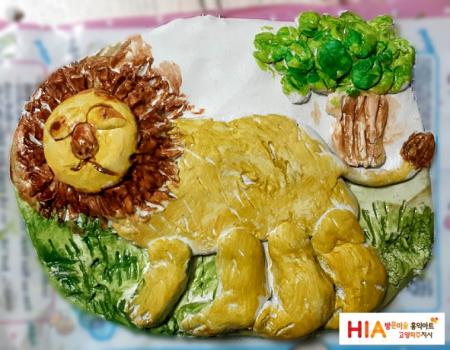부조는 평평한 면에 도드라지게 표현하는 것을 말해요 우리 홍익이는 지점토를 이용하여 사자를 표현했어요 나뭇잎을 하나 하나 붙여주고 찰흙칼로 자연스럽게 털...