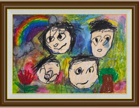 "주변 사람들에 대한 애정을 밝고 화사한 색채로 담아낸, 4세만의 순수함이 빛나는 작품입니다."