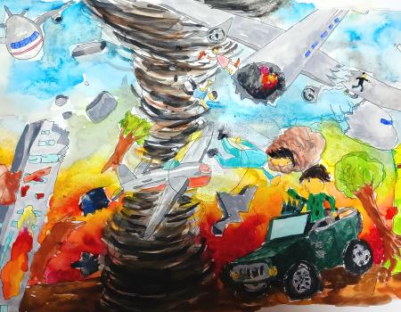 🎨 역동적이고 강렬한 그림으로 초등학교 4학년 학생이 그렸다고는 믿기지 않을 만큼 표현력이 뛰어나요. 🌪️ 표현력과 주제 전달 (Excellence in Subje...