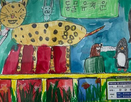 🐾 초등학교 1학년 작품 평가 (동물 유치원) 이 그림은 강렬한 캐릭터와 풍부한 상상력이 돋보이는 매우 재미있는 작품입니다! 초등학교 1학년 학생의 ...