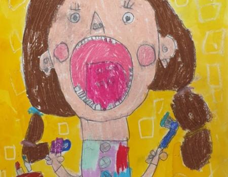 🦷 7세 여아 작품 평가 (양치하는 모습) 이 그림은 강렬한 자기중심적 표현과 대담한 색채 사용이 돋보이는 매우 흥미롭고 재미있는 작품입니다! 7세 ...